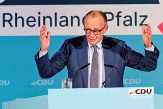 20 March 2026, Rhineland-Palatinate, Bad Duerkheim: German Chancellor Friedrich Merz speaks at the Salierhalle to mark the conclusion of the Christian Democratic Union (CDU) state election campaign. Photo: Uwe Anspach/dpa - Uwe Anspach/dpa