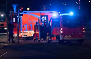 26 December 2020, Berlin: Emergency vehicles of the fire department are parked in Stresemann street after a shooting in the early morning. According to initial information, four people were injured, some of them seriously. Photo: Paul Zinken/dpa - Paul Zinken/dpa