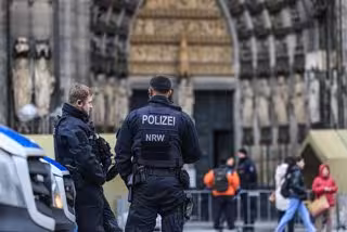 27 December 2023, North Rhine-Westphalia, Cologne: Police officers stand in front of the cathedral. Cologne Cathedral remains closed to visitors after the terror alert. Photo: Oliver Berg/dpa - Oliver Berg/dpa