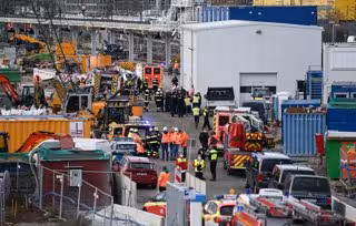 01 December 2021, Bavaria, Munich: Firetrucks, ambulances and policemen operate at the scene after an explosion took place on a Deutsche Bahn construction site, injuring three people. according to the police, the exact cause of the explosion is unclear. - Sven Hoppe/dpa