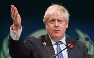 02 November 2021, United Kingdom, Glasgow: UK Prime Minister Boris Johnson gives his opening remarks at the Leaders' Action on Forests and Land-use event during the UN Climate Change Conference (COP26) at the Scottish Event Campus (SEC). Photo: Paul Ell - Paul Ellis/PA Wire/dpa