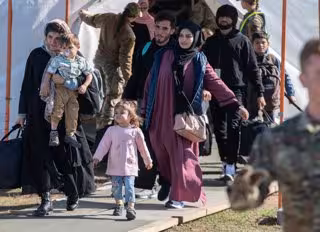 Archivo - 09 October 2021, Rhineland-Palatinate, Ramstein: Children and families carry their luggage to a collection point before departing for the US. The US is resuming flights from Ramstein for people who are expected to be flown out of the base to U