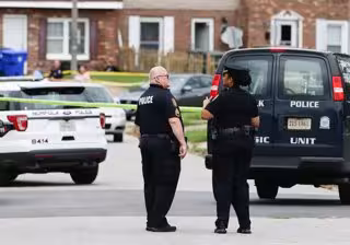 Archivo - 02 July 2021, US, Norfolk: Police officers stand guard at the scene where four children, between ages 6 and 16, were shot dead in Norfolk. Photo: Trent Sprague/Zuma Press/dpa