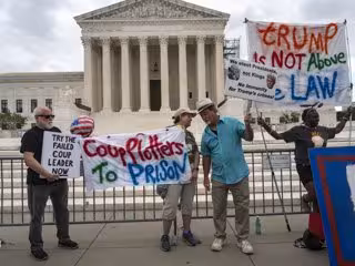 July 1, 2024, Washington, District Of Columbia, USA: A small crowd gathers outside the Supreme Court to await the ruling on Trump v. United States, which will determine if as president he is immune from prosecution for his actions. - Europa Press/Contacto/Sue Dorfman