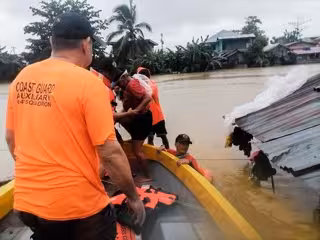 Guardia Costera de Filipinas en tareas de evacuación a causa de la tormenta tropical 'Megi'.