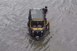 Archivo - 12 June 2021, India, Mumbai: People push an auto rickshaw as they wade through a waterlogged street as heavy rain continues, at Sion in Mumbai. Photo: Kunal Patil/PTI/dpa