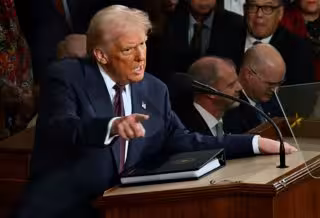 March 5, 2025, Washington, Dc, USA: U.S. President Donald Trump speaks during an Address to Congress in Washington DC on March 4, 2025. Democrats with opposing views hold signs of silent protest and refuse to stand as Republicans leapt to their feet in a - Europa Press/Contacto/Carol Guzy