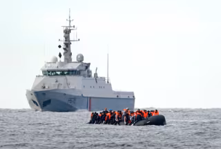 Archivo - 29 August 2023, United Kingdom, ---: A group of people thought to be migrants are escorted by a French patrol vessel as they cross the Channel in a small boat traveling from the coast of France and heading in the direction of Dover. Photo: Gar