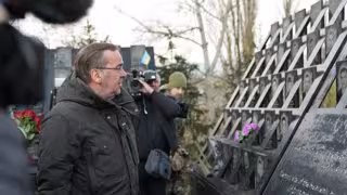 El ministro de Defensa de Alemania, Boris Pistorious, durante una visita al monumento en conmemoración a las protestas de la plaza del Maidán, en Kiev