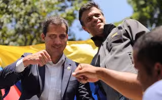 Juan Guaidó y Leopoldo López se dirigen a los manifestantes en Caracas