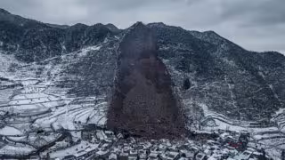 KUNMING, Jan. 22, 2024  -- An aerial drone photo taken on Jan. 22, 2024 shows the site of a landslide in Liangshui Village, Tangfang Town in the city of Zhaotong, southwest China's Yunnan Province.   China's Ministry of Emergency Management has upgraded - Europa Press/Contacto/Hu Chao