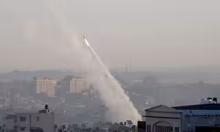 Archivo - Un cohete disparado desde la Franja de Gaza contra Israel
