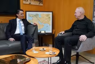HANDOUT - 04 January 2024, Israel, Tel Aviv: Israeli Minister of Defense Yoav Gallant (R) meets with U.S. Senior Advisor to President Joe Biden, Amos Hochstein at the Israeli Ministry of Defense headquarters. Photo: Ariel Hermoni/GPO/dpa - ATTENTION: ed - Ariel Hermoni/GPO/dpa