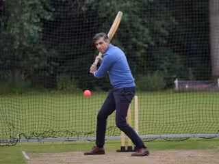 01 July 2024, United Kingdom, Shipston-On-Stour: British Prime Minister Rishi Sunak in action during a visit to Nuneaton Cricket Club, while on the General Election campaign trail. Photo: Jonathan Brady/PA Wire/dpa - Jonathan Brady/PA Wire/dpa