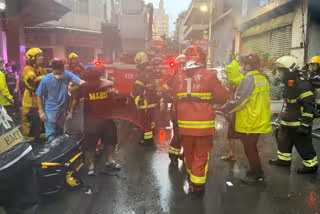 October 13, 2021, Kaohsiung, Taipei City, Taiwan: Fire fighters and rescuers conducting rescue operations outside a building in a downtown area of Kaohsiung that has been engulfed in huge fire, with at least 7 deaths dozens of them injured, according to - Europa Press/Contacto/Handout/ Fire Bureau Of Kaoh