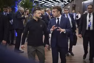November 7, 2024, Budapest, Hungary: Ukrainian President Volodymyr Zelenskyy, left, walks with French President Emmanuel Macron, right, before a bilateral meeting on the sidelines of the 5th European Political Community Summit, November 7, 2024 in Budapes - Europa Press/Contacto/Ukraine Presidency/Ukrainian