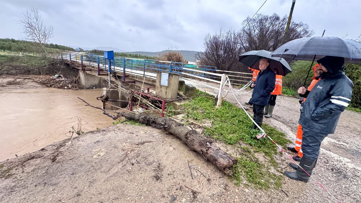 Barón, junto con el responsable de Seguridad, Antonio García, han visitado este sábado Bobadilla, para ver de primera mano la evolución de las lluvias y el temporal.