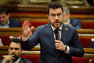 El presidente de la Generalitat, Pere Aragons, interviene durante una sesión plenaria en el Parlament, a 22 de marzo de 2023, en Barcelona, Catalunya (España). El pleno del Parlament vota hoy si convalida el decreto ley del Govern para hacer frente a l - Alberto Paredes - Europa Press