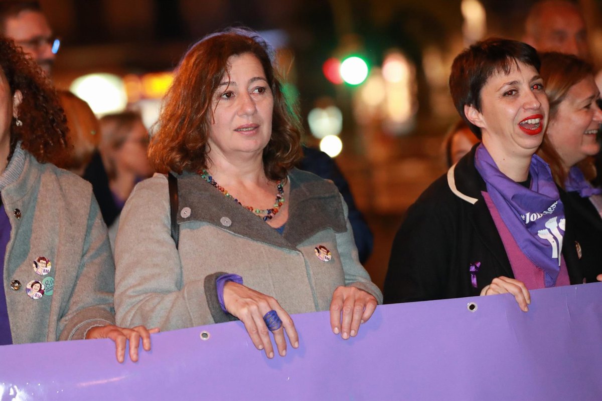 Archivo - La presidenta del Govern, Francina Armengol (i), durante la manifestación encabezada por el Moviment Feminista de Mallorca por el 8M, Día Internacional de la Mujer, a 8 de marzo de marzo de 2023, en Palma de Mallorca, Mallorca, Baleares (España)