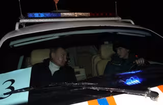 HANDOUT - 07 January 2021, Russia, Lipno Island: Russian President Vladimir Putin (L) arrives to attend the Christmas service at the Saint Nicholas Church. Photo: -/Kremlin/dpa - ATTENTION: editorial use only and only if the credit mentioned above is re