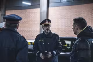 HANDOUT - 26 December 2020, Austria, Suben: Andreas Pilsl, State Police Director for Upper Austria, speaks to police personnel as the first Pfizer/BioNTech vaccination doses against Covid-19 arrive at the Austrian border crossing in Suben. Photo: Max Ma - Max Mayrhofer/LAND O/dpa