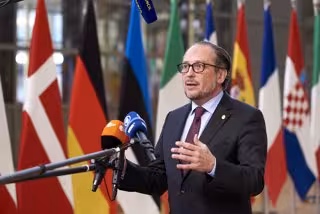 October 22, 2021, BRUSSELS, BELGIUM: Chancellor of Austria Alexander Schallenberg arrives for.. the second day of an European council summit, in Brussels, Friday 22 October 2021. EU leaders will meet in Brussels to discuss COVID-19, digital transformati