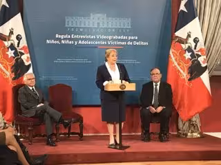 "Presidenta Michelle Bachelet promulga ley que establece un sistema de entrevistas videograbadas para niños, niñas y adolescentes víctimas de delitos graves", ha informado la cuenta de comunicaciones de Presidencia a través de su cuenta de Twitter.