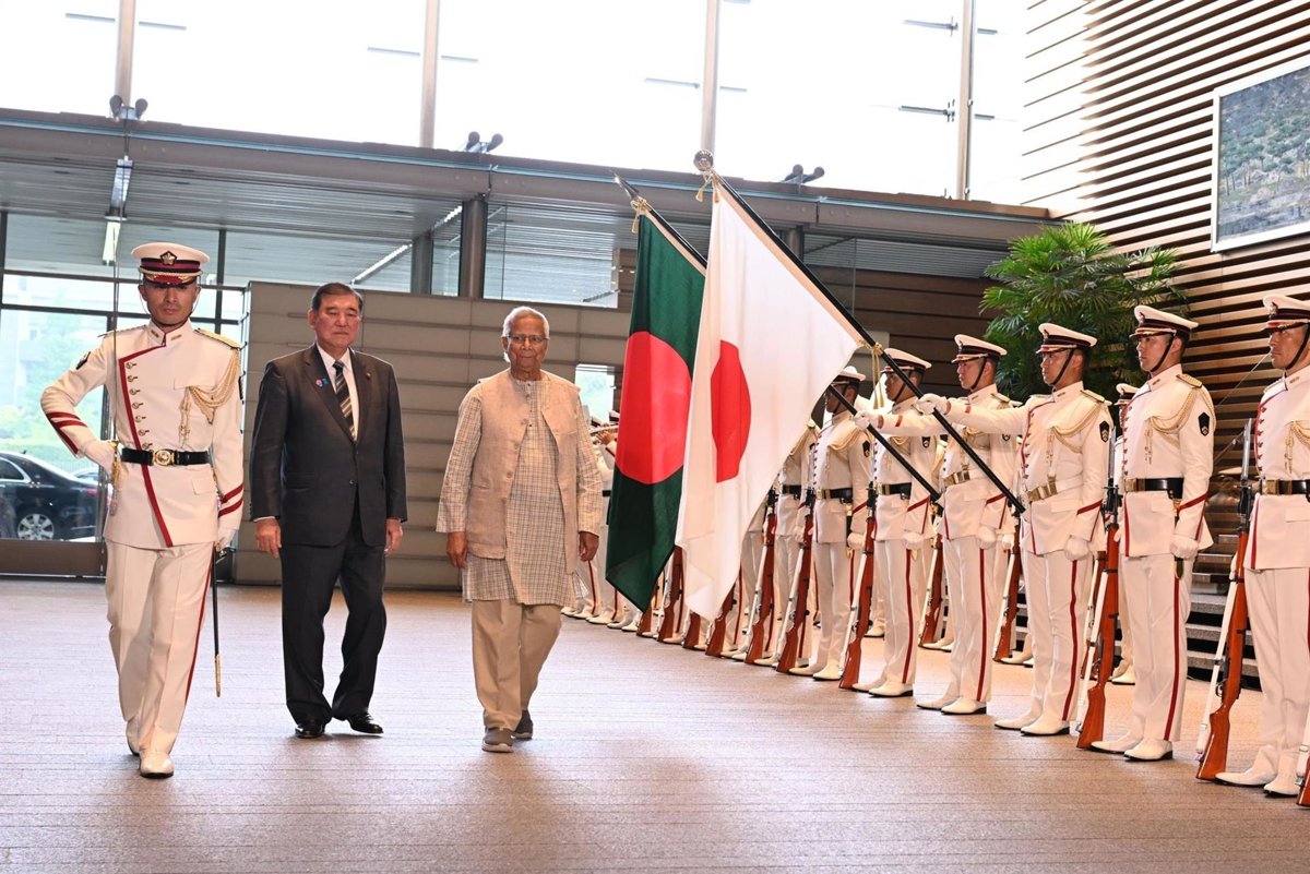El primer ministro de Japón, Shigeru Ishiba, y el primer ministro en funciones de Bangladesh, Mohamed Yunus