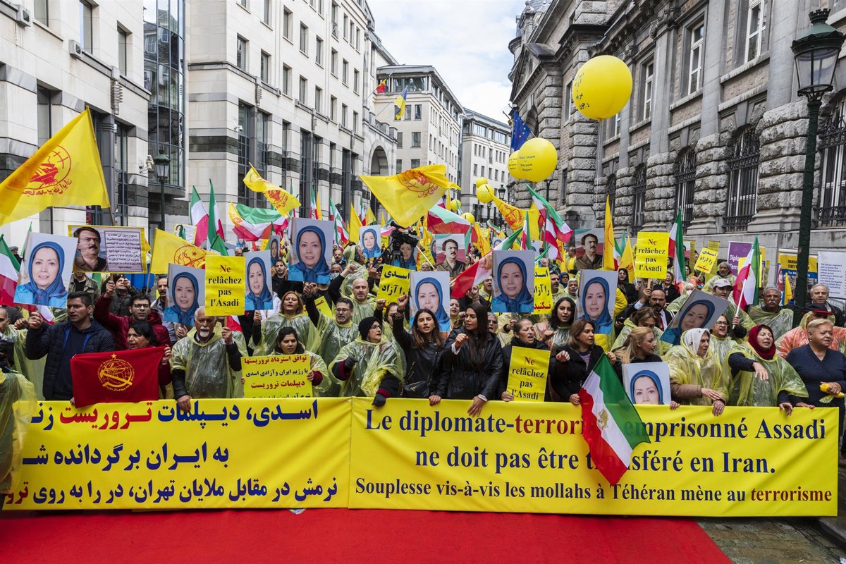 Manifestación frente a la sede del Ministerio de Justicia de Bélgica para protestar contra la extradición de Assadolá Assadi. - NICOLAS LANDEMARD / ZUMA PRESS / CONTACTOPHOTO
