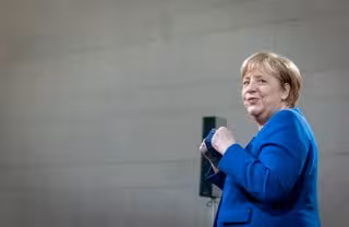 10 November 2021, Berlin: German Chancellor Angela Merkel is pictured after the handover of the annual report of the German Council of Economic Experts ("Wirtschaftsweise"). Photo: Kay Nietfeld/dpa-Pool/dpa