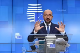 HANDOUT - 25 June 2021, Belgium, Brussels: President of the European Council Charles Michel speaks during a press conference after a two-days European Union summit at the European Council. Photo: Dario Pignatelli/European Council/dpa - ATTENTION: editor - Dario Pignatelli/European Counci / DPA
