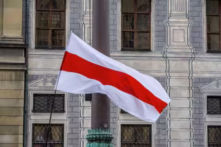 Archivo - May 29, 2021, Munich, Bavaria, Germany: The flag of Belarus waved during a global protest for democracy.  On the one-year anniversary of the arrest of Siarhei Tsikhanouski, his wife Sviatlana Tsikhanouskaya, an exiled opposition leader, called