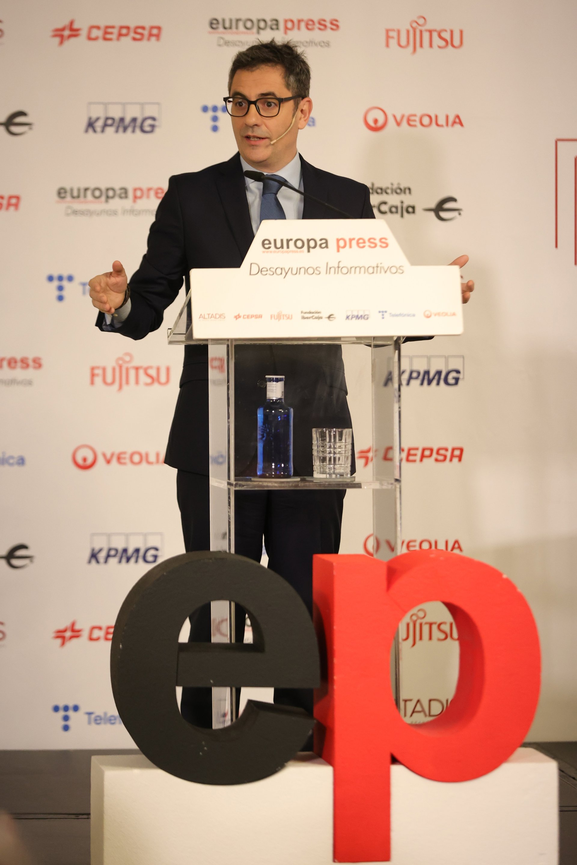 El ministro de la Presidencia, Relaciones con las Cortes y Memoria Democrática, Félix Bolaños, interviene durante un desayuno de Europa Press, en el Rosewood Villa Magna, a 25 de enero de 2023, en Madrid (España). - Jesús Hellín - Europa Press