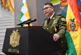 Archivo - 16 November 2020, Bolivia, La Paz: General Jhonny Aguilera makes a speech after being appointed as interim chief of police of the country by the new Bolivian head of state, Luis Arce Catacora. Photo: ---/ABI/dpa