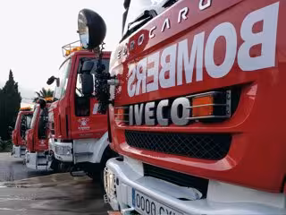 Archivo - Camiones de Bomberos de Ibiza estacionados.