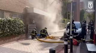 Un total de nueve dotaciones de Bomberos de Madrid han extinguido este sábado un incendio declarado en un cuarto de contadores en un edificio de la calle Sanxenxo, en el distrito madrileño de Fuencarral.