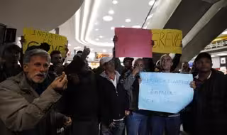 Huelga de trabajadores en el aeropuerto de Sao Paulo.