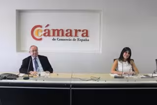 La Cámara de Comercio de España ha salido este miércoles en defensa de la monarquía parlamentaria en España ensalzando la labor de Juan Carlos I durante la Transición y también la que está desarrollando su hijo, Felipe VI.
