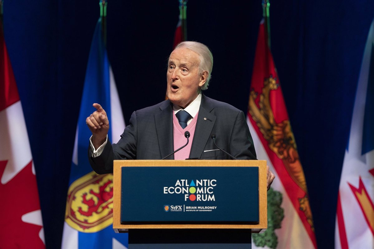 Archivo - June 19, 2023, Antigonish, NS, Canada: Former prime minister Brian Mulroney speaks during the Atlantic Economic Forum at St. Francis Xavier University in Antigonish, N.S. on Monday, June 19, 2023.