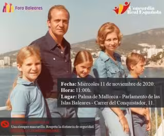 Foro Baleares ha convocado este miércoles en Palma (11.00 horas frente al Parlament) una concentración de apoyo a la monarquía y especialmente a las figuras de los reyes Juan Carlos y Sofía.