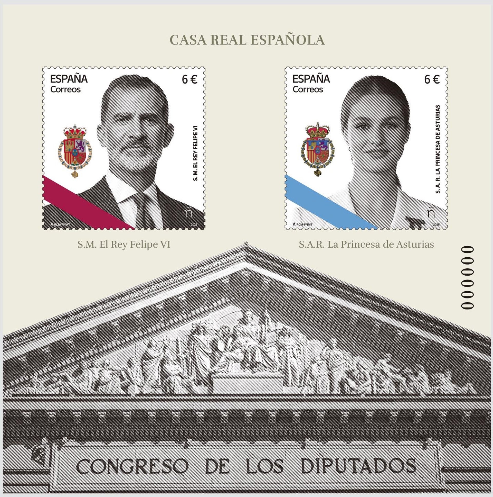Los sellos de el Rey Felipe VI y la Princesa de Asturias, Leonor, que Correos emitirá para rendir homenaje a la Casa Real Española. - CORREOS