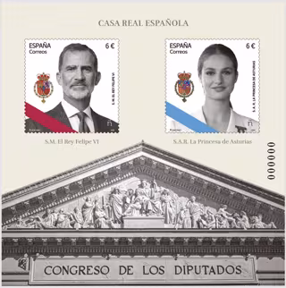 Correos ha emitido una edición especial de sellos con la imagen del Rey Felipe VI y la Princesa de Asturias como homenaje a la Casa Real Española y a la monarquía parlamentaria, una tirada de 60.000 unidades que se comenzarán a emitir a partir de este viernes.