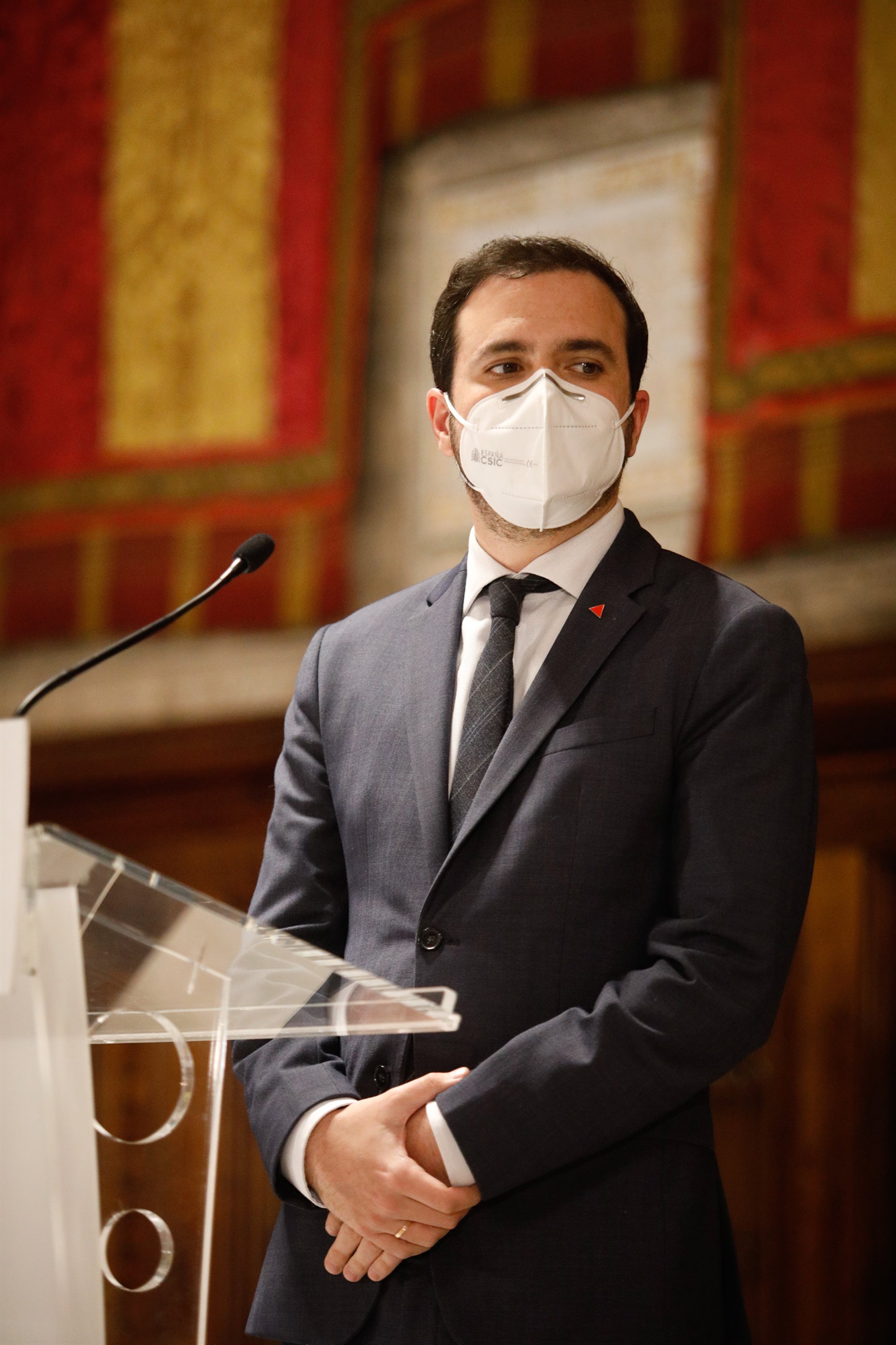 El ministro de Consumo y líder de IU, Alberto Garzón interviene en rueda de prensa después de una reunión de trabajo en el Ayuntamiento de Barcelona, Catalunya (España), a 17 de diciembre de 2020. - Kike Rincón - Europa Press