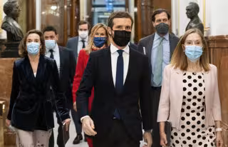 (I-D) La portavoz del PP en el Congreso, Cuca Gamarra; el presidente del PP, Pablo Casado; y la vicepresidenta segunda del Congreso de los Diputados y vicesecretaria de Política Social del PP, Ana Pastor, a su llegada a una sesión de control al Gobierno - POOL. Luis Diaz/La Razón - Archivo