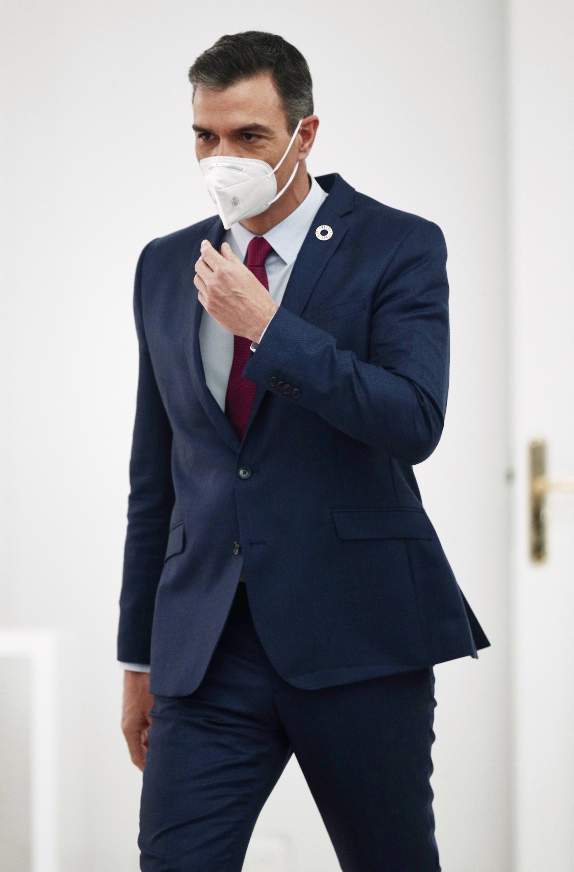 El presidente del Gobierno, Pedro Sánchez a su llegada a la rueda de prensa para presentar el primer informe de rendición de cuentas del Gobierno, en Madrid (España), a 29 de diciembre de 2020. Este documento analiza, entre otras cosas, el grado de cump - EUROPA PRESS/E. Parra. POOL - Europa Press