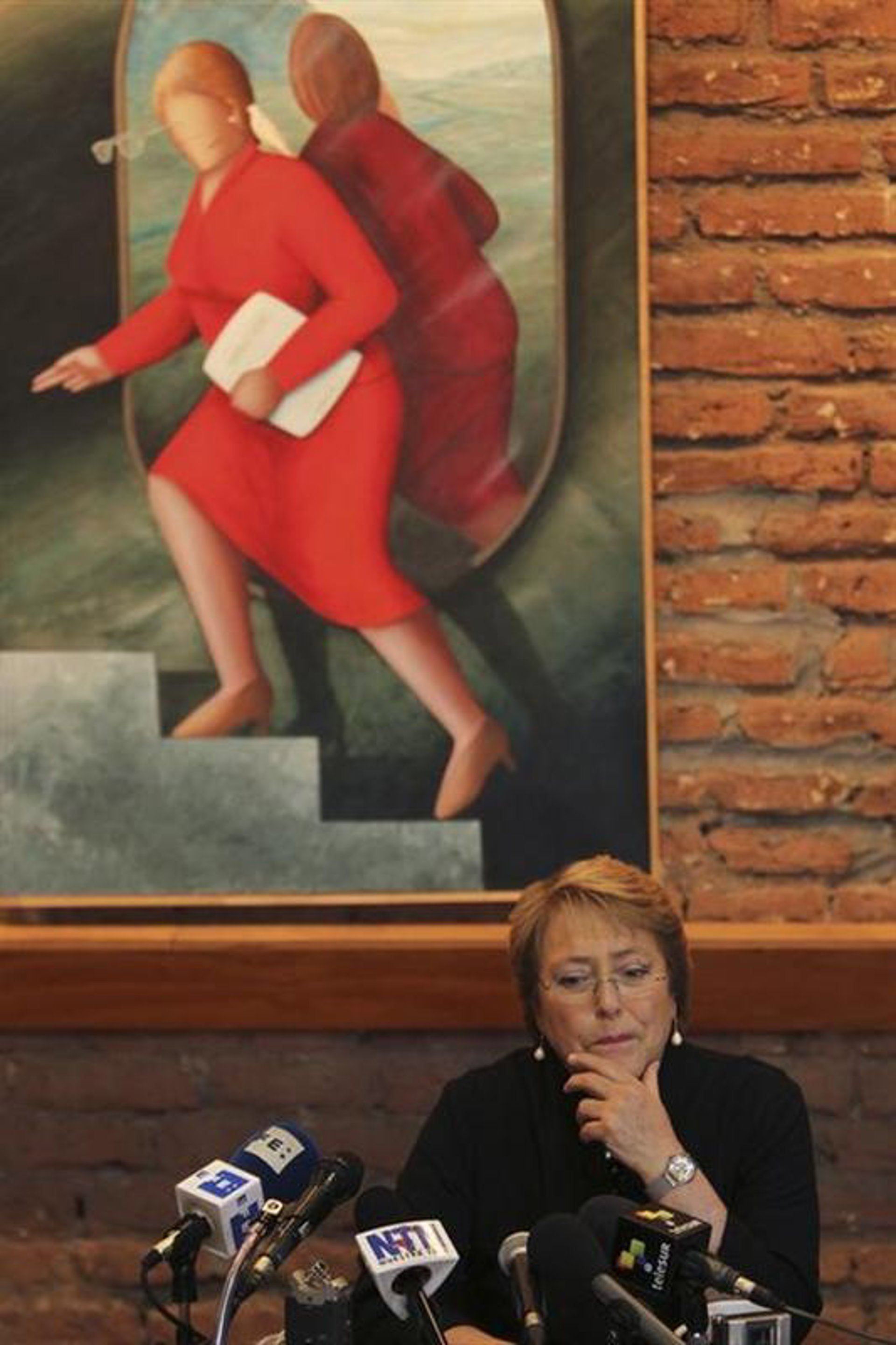 La candidata presidencial y ex mandataria de Chile Michelle Bachelet conversa co