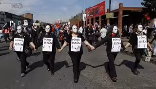 Manifestantes marchan por Santiago portando carteles que preguntan "¿Dónde están