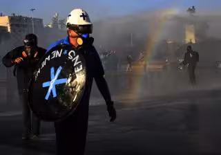 En la zona se produjeron enfrentamientos entre Carabineros y manifestantes, que lanzaron objetos contundentes contra la policía. Los agentes respondieron con cañones de agua y gas lacrimógeno.