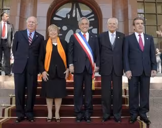 El presidente de Chile, Sebastián Piñera, acompañado de los ex mandatarios Patri