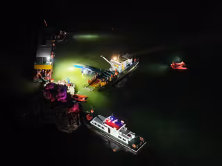Imagen aérea de las operaciones de rescate tras el hundimiento de dos barcos de turistas en la ciudad china de Qianxi